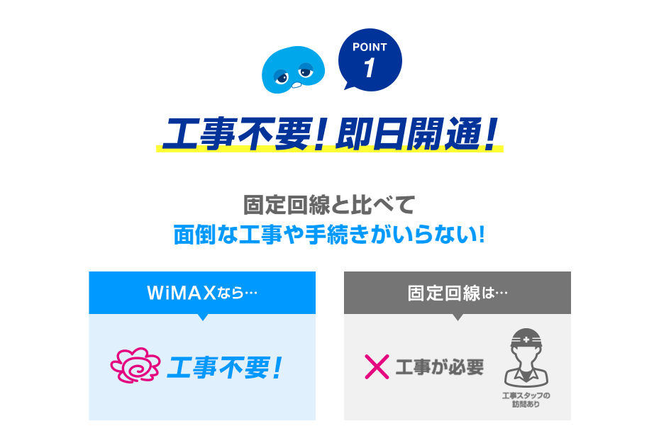 ・工事で不要で即日開通!設置簡単ですぐ使える!
